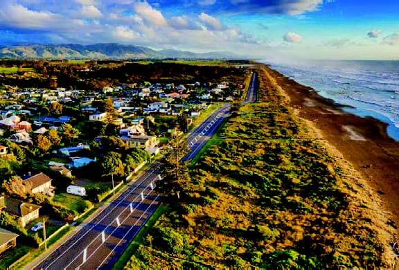 西側はタスマン海に面し、東側にはタラルア山脈がそびえ立ち、ビーチや川、森林地帯など多彩な景観が広がっています。また、カピティ・コーストには州道1号線と鉄道(NIMT)が通っており、交通の便も良好です。